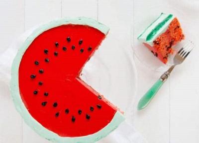 طرز تهیه کیک هندوانه شب یلدا تزیین با خامه